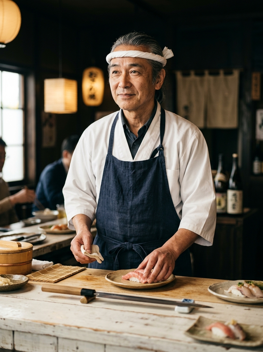 十五の春、東京・築地の老舗鮨店に弟子入りした。包丁を握る前に、まず魚を見る目を育てろ——師の言葉は今も耳に残る。毎朝四時に市場へ出向き、目利きの基礎を叩き込まれた日々。